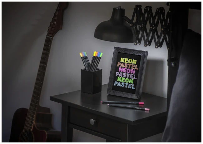 Kleurpotloden van de Black Edition serie. De potloden hebben een trendy en uitzonderlijke uitstraling. Dit superzachte potlood zorgt voor een zeer soepele, zachte kleurverdeling. Deze set bestaat uit neon en pastel kleuren. Gemaakt van hoogwaardig zwart hout. Deze serie potloden hebben een ergonomische driehoekige vorm. De potloden zijn voorzien van een speciale (SV) verlijming om het breken van de stift te voorkomen. Deze set bestaat uit 12 potloden in kartonnen etui.