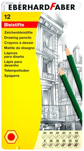 - 12 Potloden hexagonaal met 12 verschillende hardtegraden.