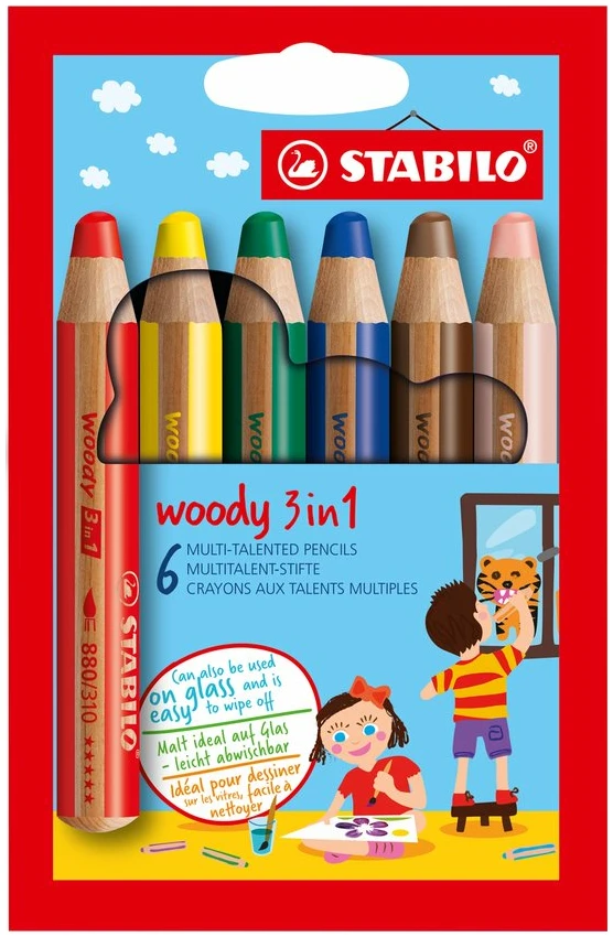 De woody 3 in 1 is een kleurpotlood, waskrijt en aquarelpotlood in één en kleurt op uiteenlopende oppervlakken en ondergronden. Kortom: een echte alleskunner!